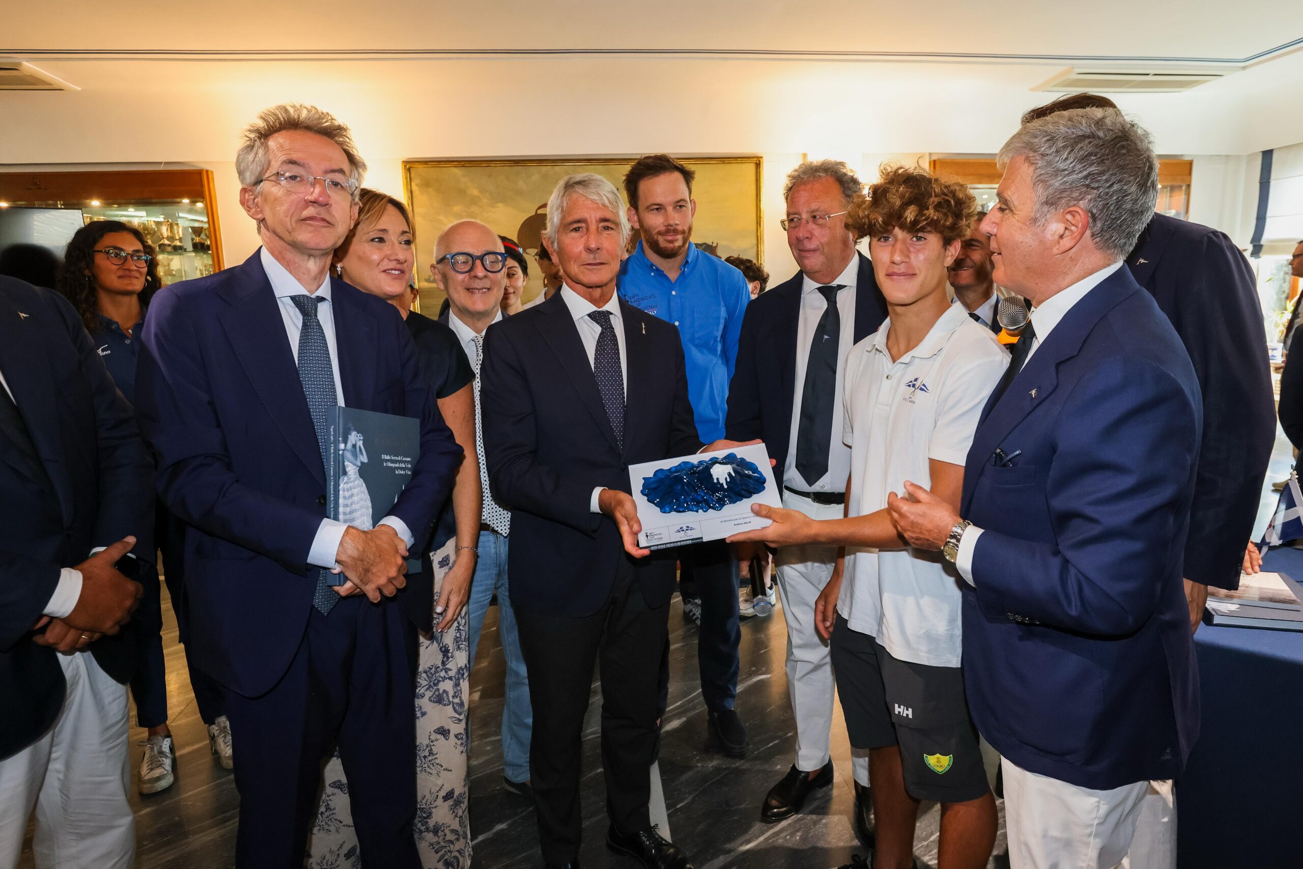 Il ministro Abodi ha ricevuto dal presidente del Circolo Savoia, Fabrizio Cattaneo della Volta, una scultura con i colori sociali del Club e un libro dedicato ai Giochi velici di Napoli 1960. “C’è un filo che collega le Olimpiadi del 1960 e l’evento che Team New Zealand ha portato in Italia – ha aggiunto il ministro -. La genesi di questa sfida vinta è l’espressione massima dell’italianità: ottenuta rapidamente, in silenzio e col lavoro”.