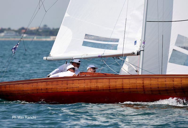 “Galatea II”, costruita da Baglietto, ha una storia che parla da sola: partecipazione alle Olimpiadi di Helsinki 1952, vittoria al Marblehead Trophy nel 1954, poi nei decenni il rischio del disarmo e il salvataggio, con un restauro curato dai fratelli La Scala che ha permesso allo scafo di tornare a frequentare i campi di regata con continuità, dimostrando di poter competere a livelli di vertice senza tradire l’eleganza che ne fa un’icona.