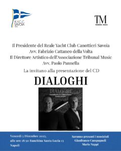 Venerdì 5 dicembre 2025, alle ore 18:30, presso la sede del Reale Yacht Club Canottieri Savoia in Banchina Santa Lucia 13 a Napoli, sarà presentato l’album “Dialoghi”, di Gianfranco Campagnoli e Mario Nappi. Il progetto discografico propone un percorso musicale da Ludwig van Beethoven a Michael Jackson.